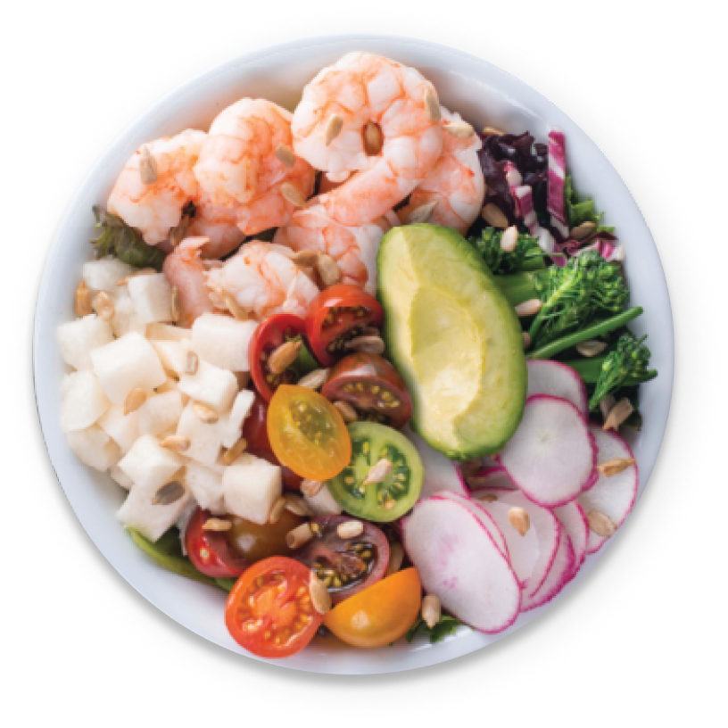 tiger shrimp · bubu salad mix · cherry tomatoes